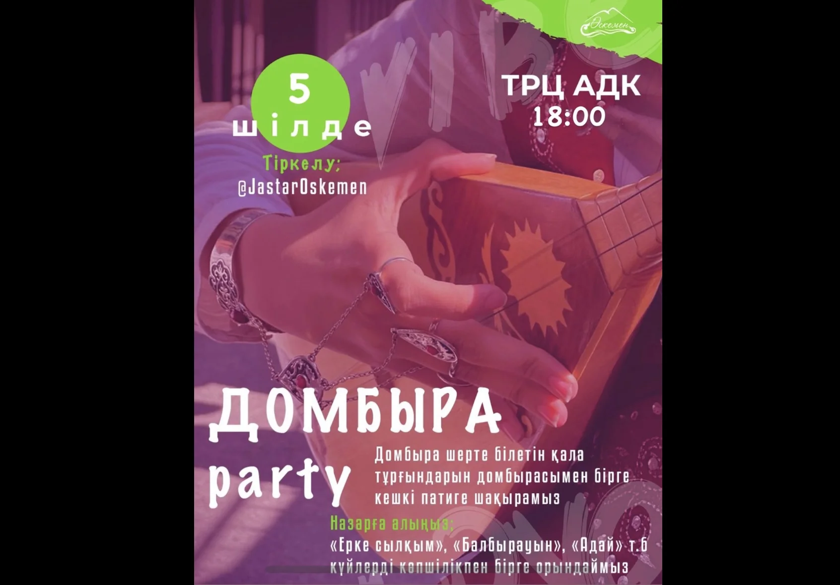 «Ерке сылқым», «Балбырауын», «Адай» т.б. күйлерді көпшілікпен бірге орындай аласыздар.