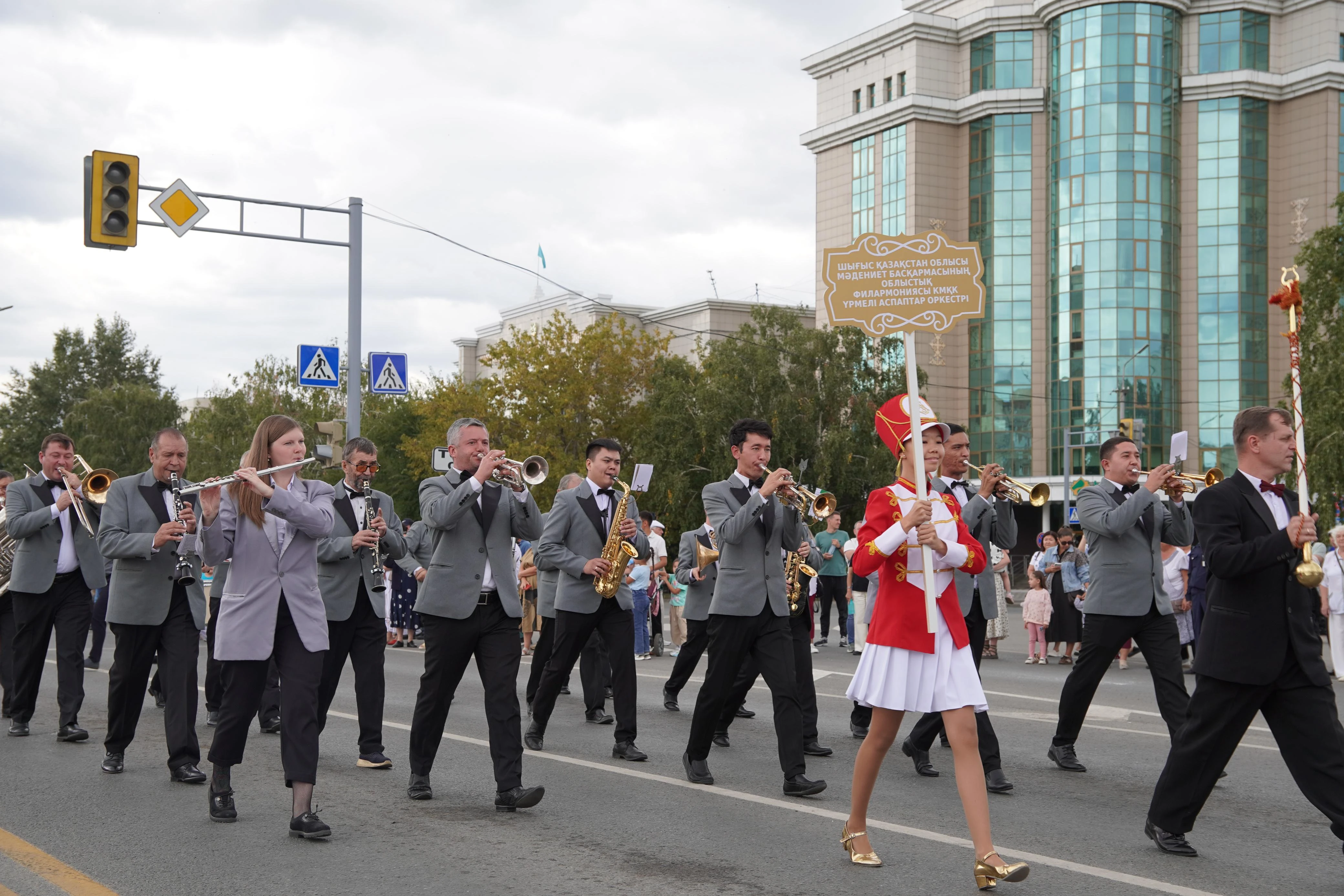 В параде приняли участие Государственный духовой оркестр РК, ансамбль барабанщиков, кадеты средней школы №4, духовой оркестр Восточно-Казахстанского училища искусств имени народных артистов братьев Абдуллиных города Усть-Каменогорска, духовые оркестры городов Алтай, Шемонаиха, квинтет медных духовых инструментов «Altai», духовой оркестр Зайсанского района, оркестр ВЧ 5512 регионального командования «Шығыс» Национальной гвардии РК города Павлодара и духовой оркестр областной филармонии Управления культуры ВКО.