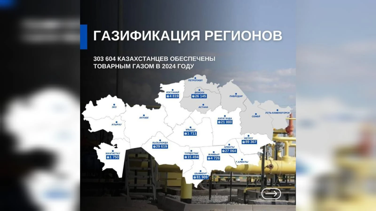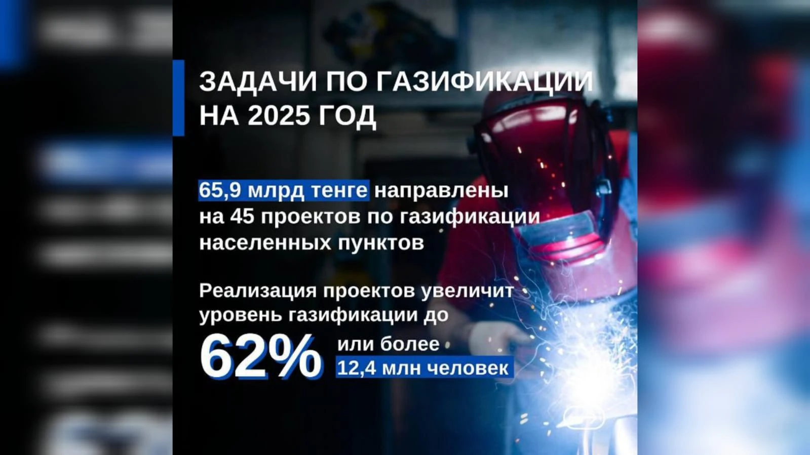 В 2025 году государством для реализации 45 проектов по газификации 7 населенных пунктов выделено 65,9 млрд тенге.