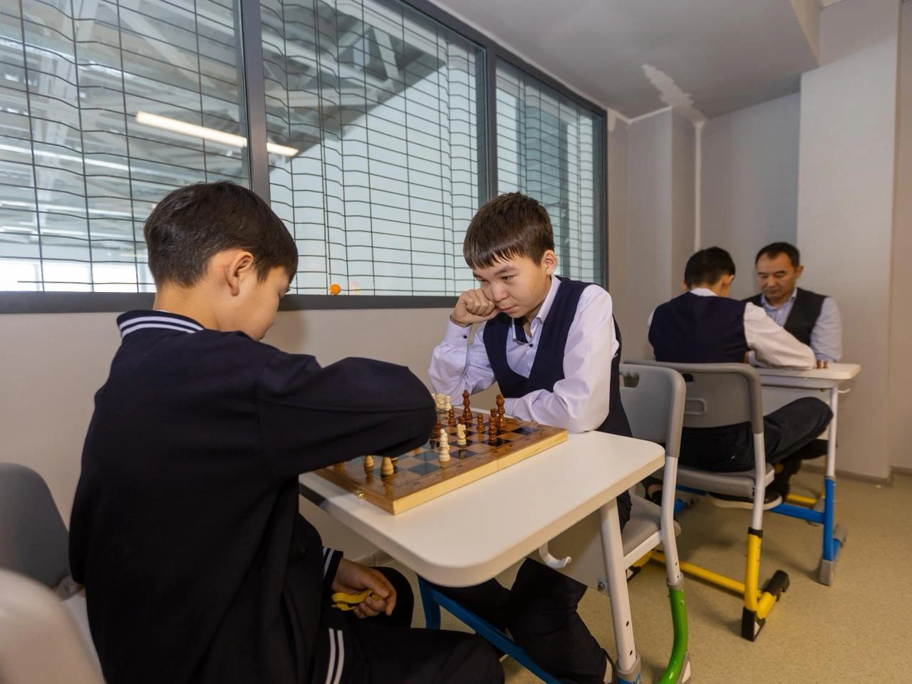 Новое здание отвечает всем современным требованиям: здесь оборудованы специализированные учебные кабинеты, спортивный зал и цифровые классы, где учащиеся осваивают передовые технологии и элементы искусственного интеллекта.