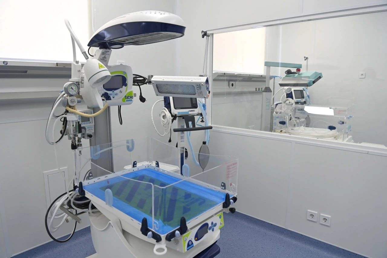 Президенту представили кабинеты диагностики, отделение интенсивной терапии для младенцев и операционные.
