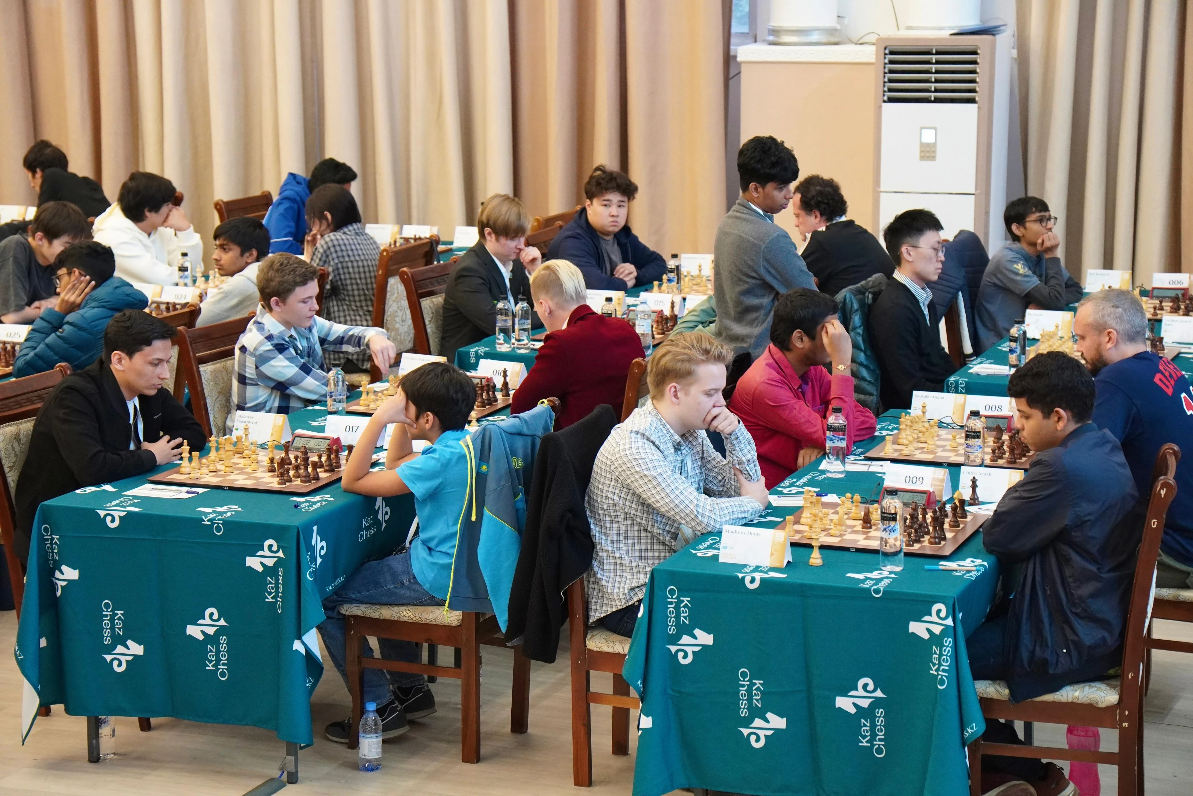 Здесь же присутствует вся пятерка игроков нашей мужской сборной, недавно неплохо проявившей себя на 45-й шахматной Олимпиаде в столице Венгрии городе Будапеште, это Денис Махнев (2537), Казыбек Ногербек (2534), Алишер Сулейменов (2520), Рамазан Жалмаханов (2488) и Алдияр Ансат (2456). Плюс Арыстанбек Уразаев (2474), бывший в качестве запасного участника и одного из тренеров в венгерской столице, и Азамат Утегалиев (2418), в июле с блеском выигравший сильный по составу участников «мастерс» в Астане.