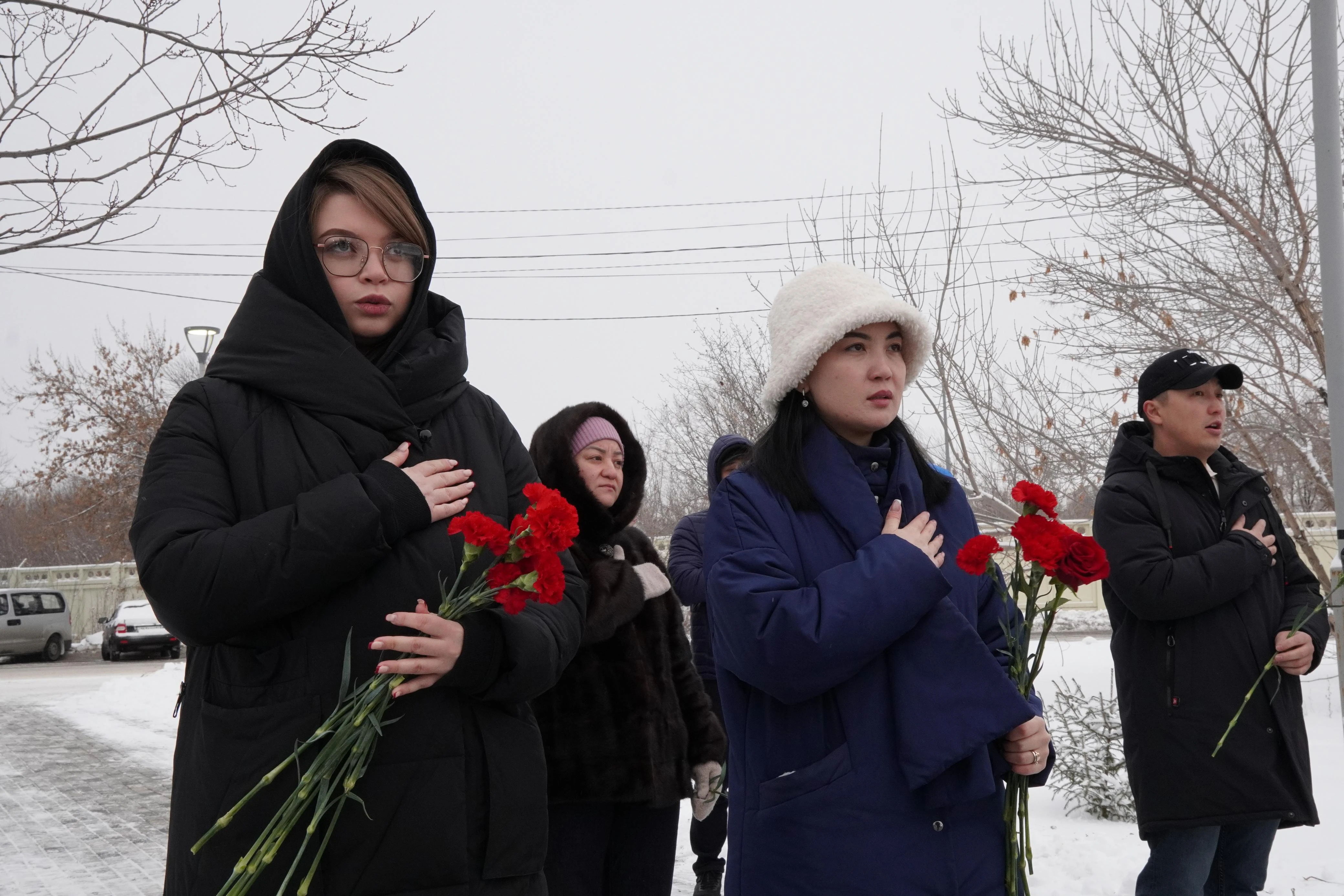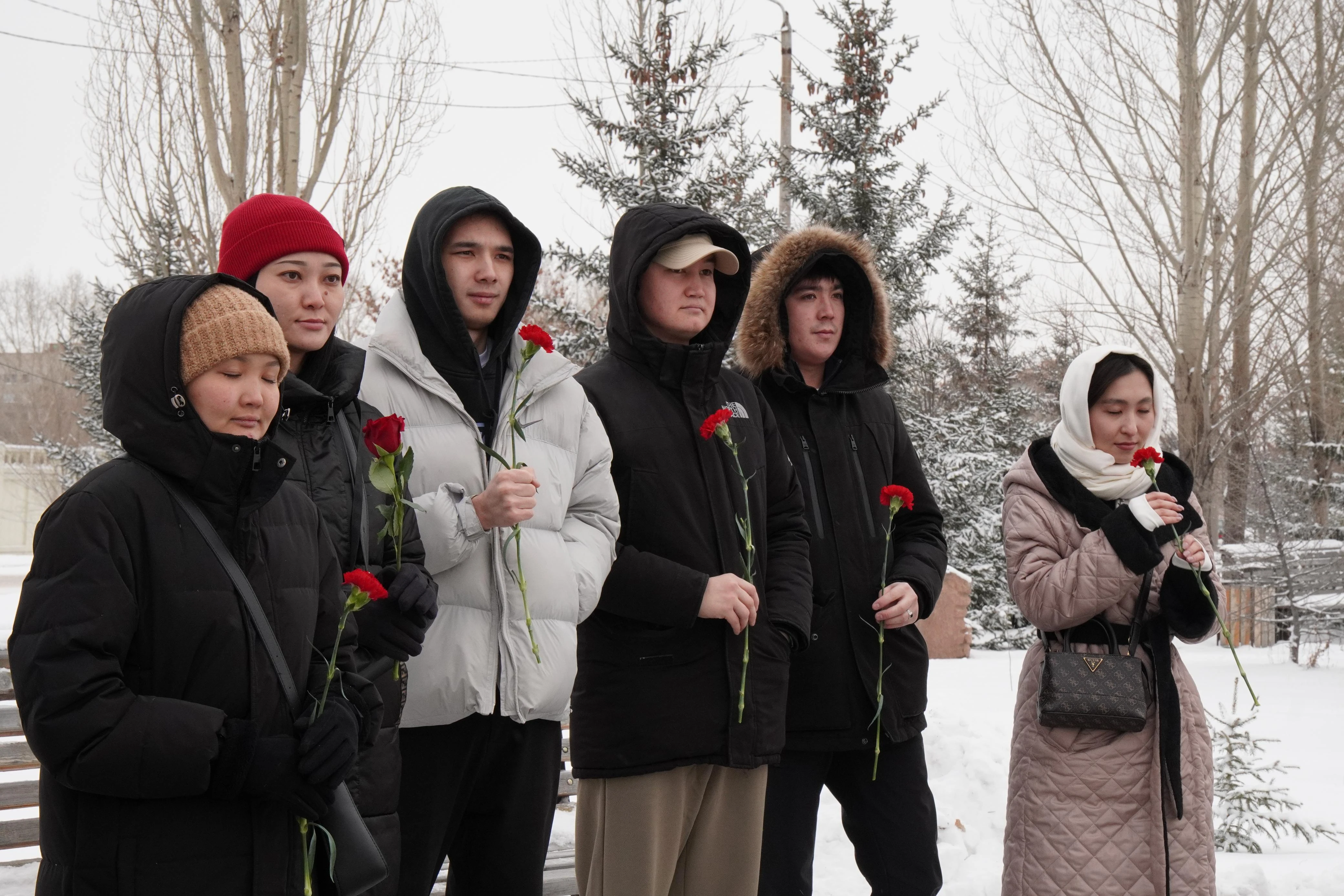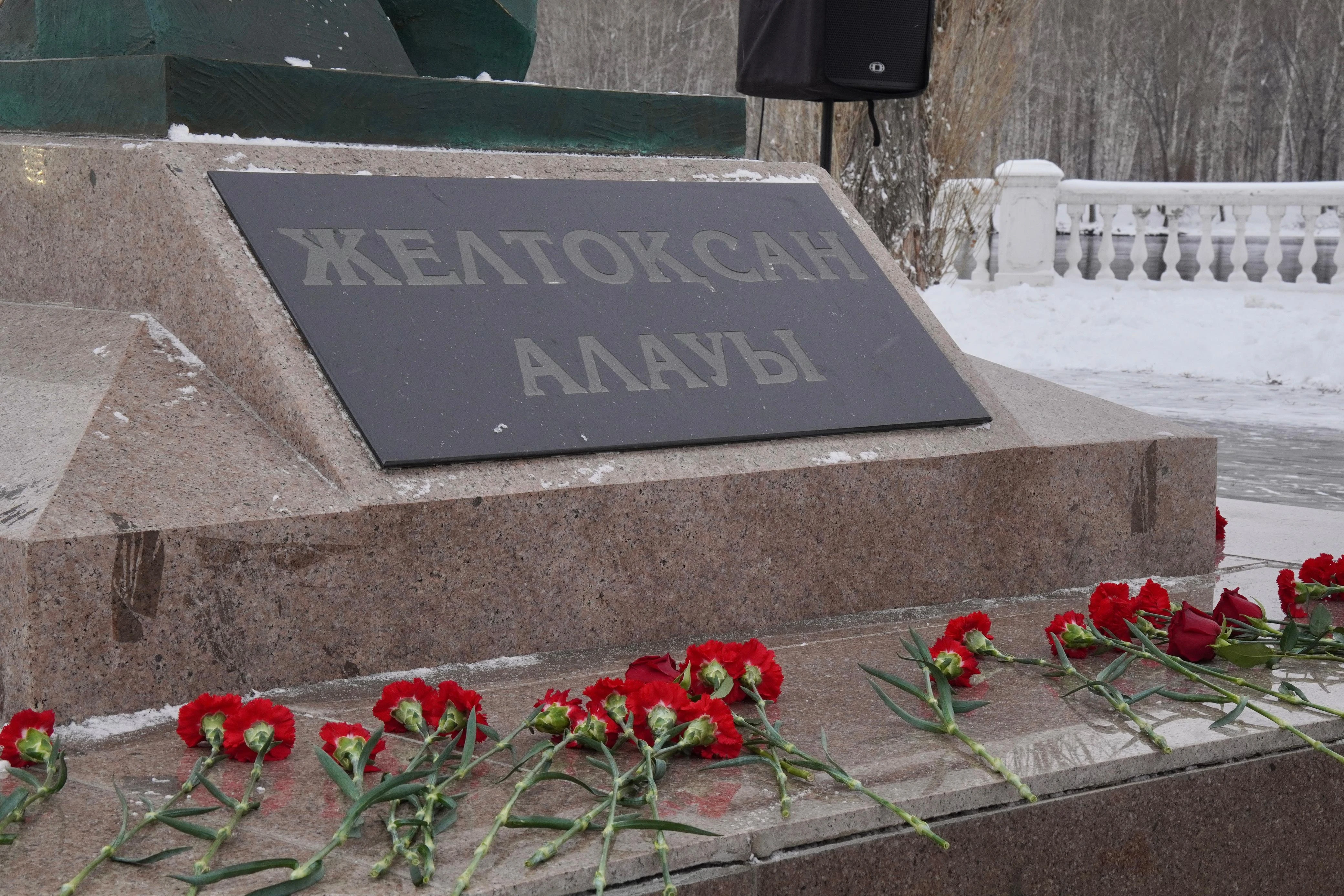 Участники акции - представители ведомств, Молодежного ресурсного центра, общественных объединений и жители города - почтили минутой молчания память героев, сыгравших 33 года назад важную роль в становлении независимого Казахстана, и возложили цветы к мемориалу.