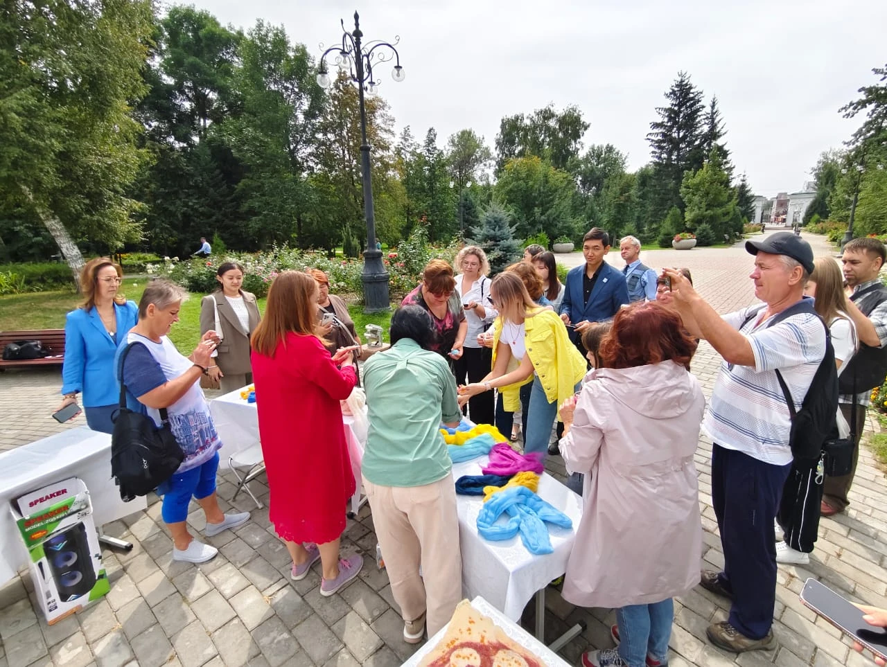 Получившееся изделие стало знаком общего креативного творчества устькаменогрцев, а все желающие могли приобрести новенькие тюбитейки.